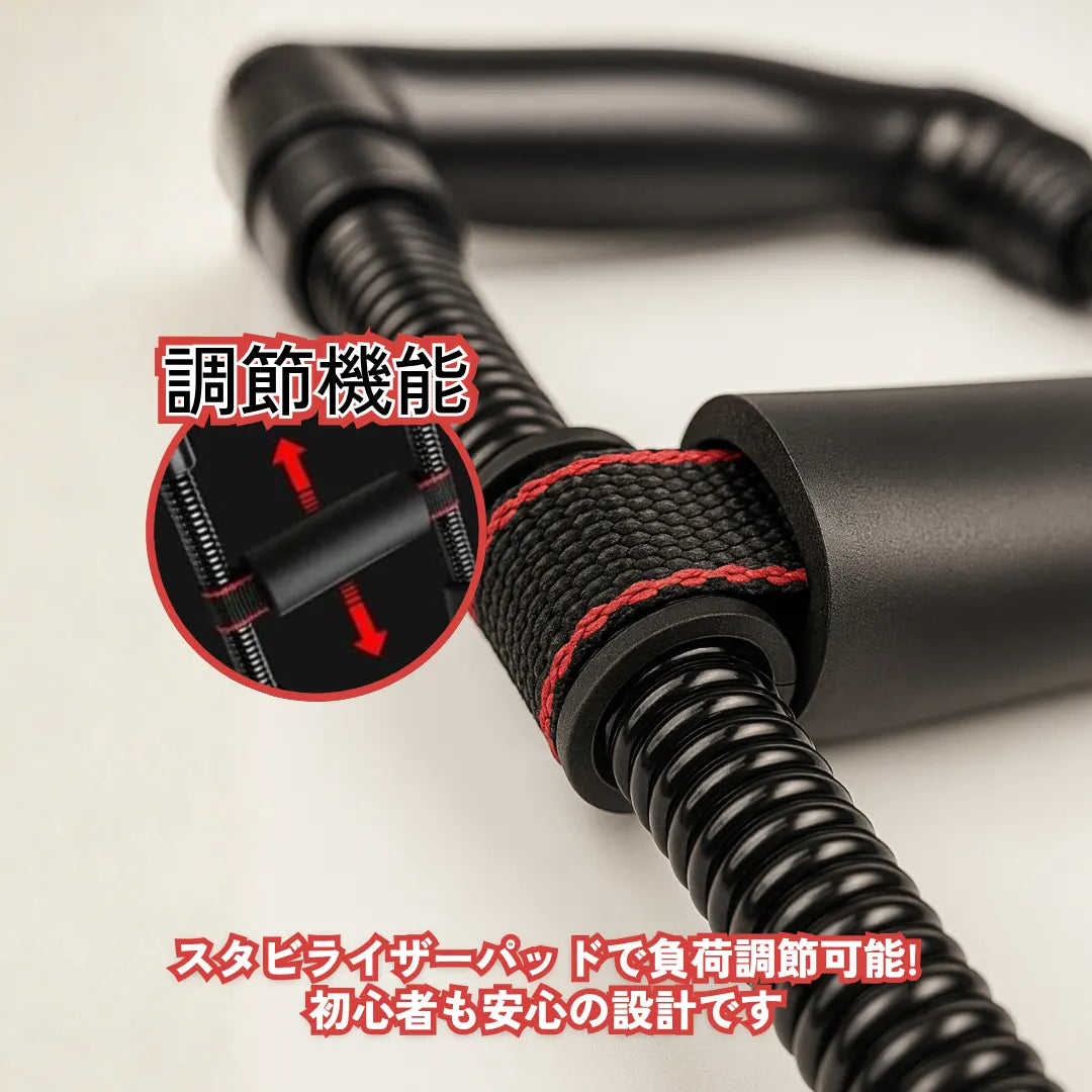 航空機グレードのマンガン鋼スプリングが、段階的かつ効果的に筋力を強化します。調整可能な負荷は5kg〜30kgまで。初心者から上級者まで、それぞれのレベルに最適な負荷で継続できます。